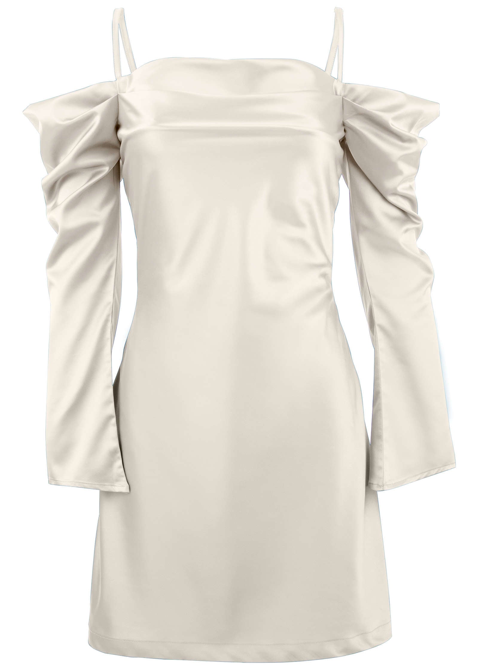 This mini dress is a charmer. Up top it has delicate spaghetti straps. a romantic cowl neckline and flirty long sleeves. Below. a sleek silhouette and mini hemline make a bold. leg-highlighting statement. Done in our EffortLuxe fabric. it has a silky feel. subtle sheen and gorgeous drape with just a hint of stretch for comfort. Oh. and it doesn't wrinkle so it ALWAYS looks this good. * Available in plus sizes * Adjustable spaghetti straps * Cold-shoulder styling * Cowl neckline * Long sleeves * Mini length approx. 29" * Invisible back zipper closure * Partially lined * EffortLuxe (Poly/spandex. Imported)