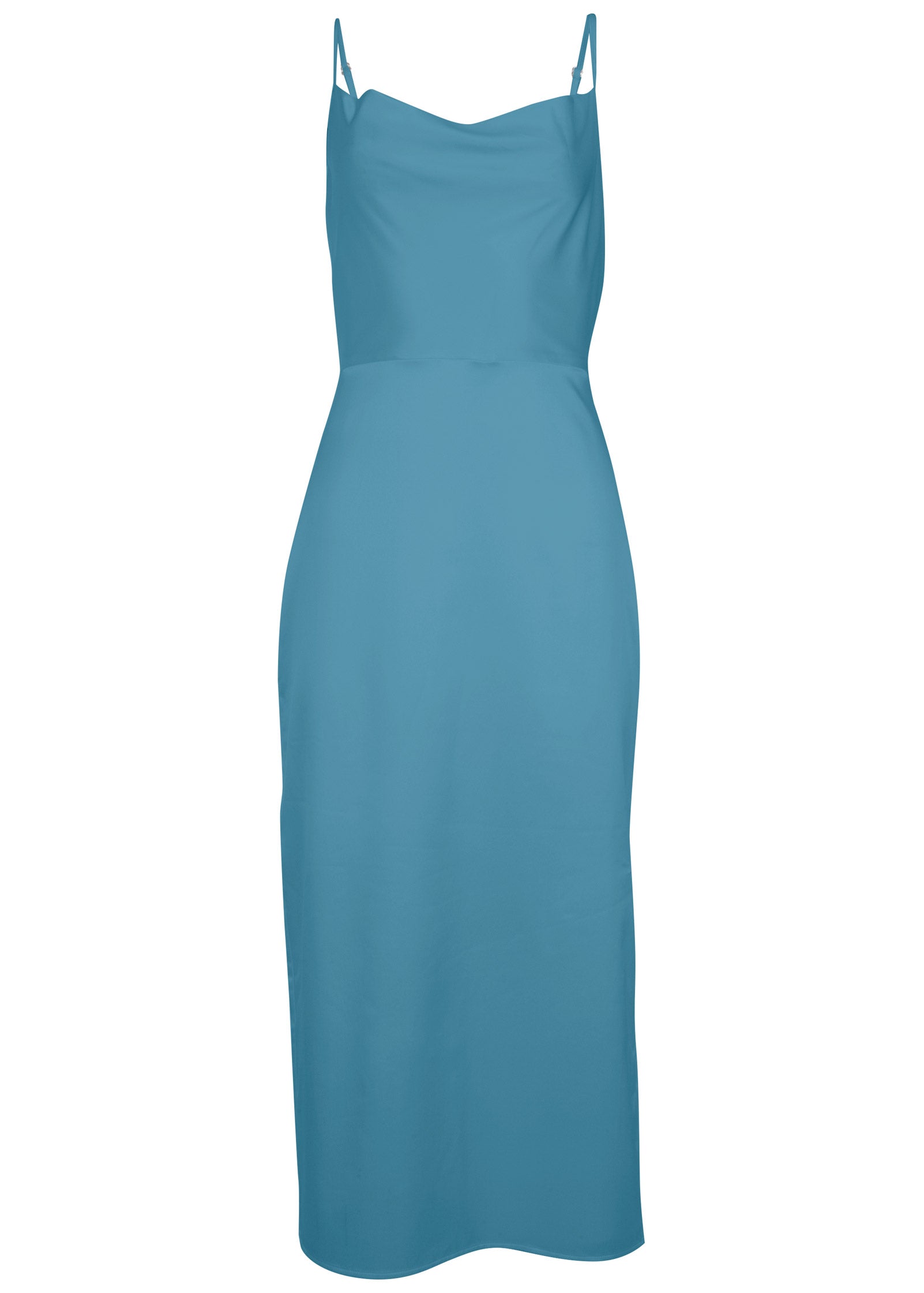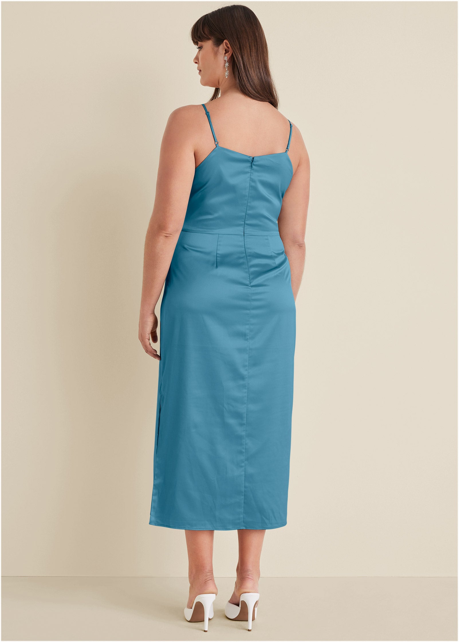 RSVP yes. if only so you can wear this slip dress. From the elegant cowl neckline to the fitted waist and sleek skirt with flirty leg slit. this midi dress is the ultimate plus one. Done in our EffortLuxe fabric. it has a silky feel. subtle sheen and gorgeous drape. Even more notable is the hint of stretch that not only makes it insanely comfortable. but magically equates to no wrinkles!* Available in plus sizes* Midi length; from shoulder: 47" missy. 50" plus* Adjustable spaghetti straps* Cowl neckline* Invisible back zipper closure* Leg slit* Unlined* For printed items. print placement may vary* EffortLuxe (Polyester/spandex. Imported)