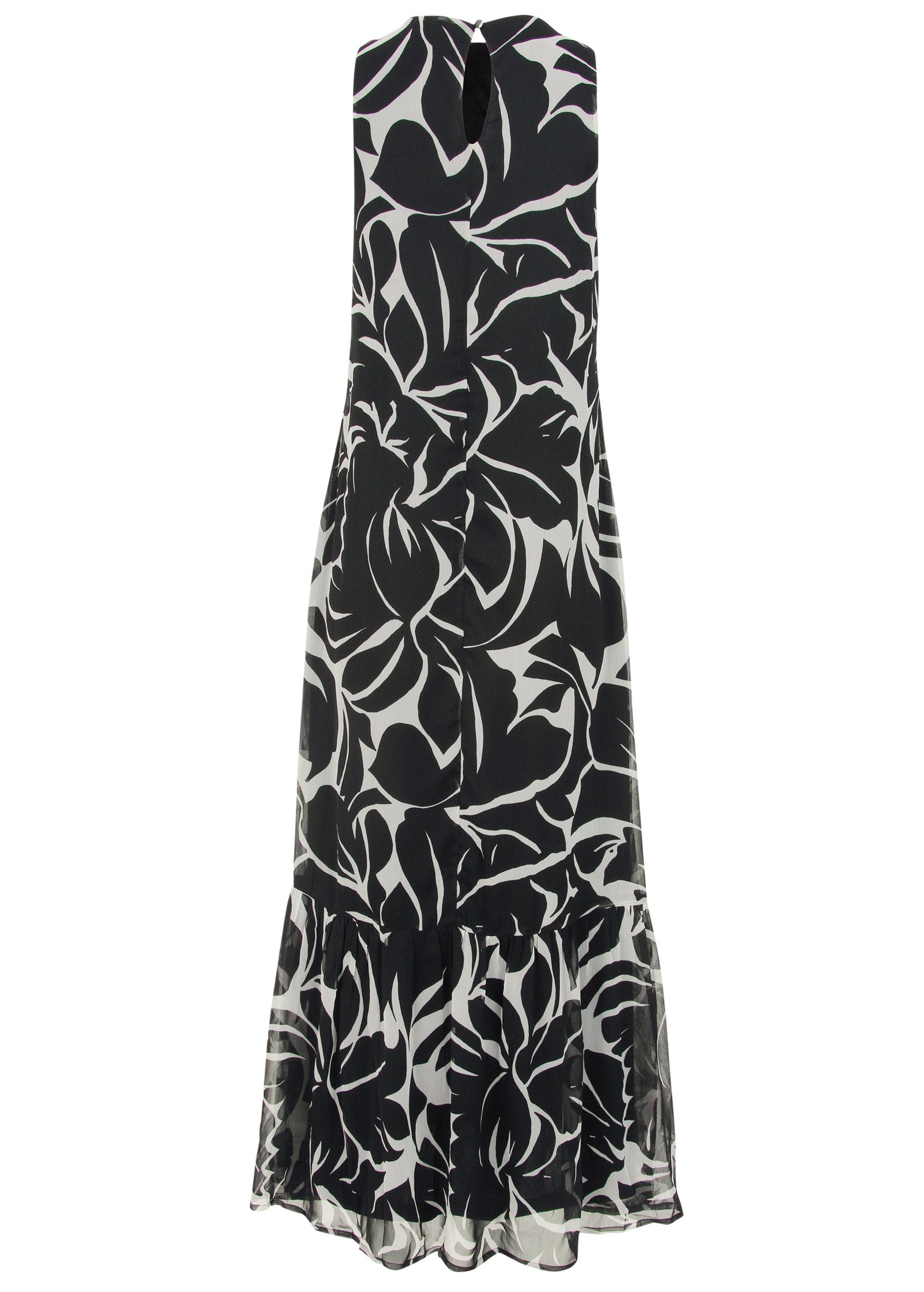 Crafted in lightweight chiffon. this trapeze maxi dress wears like an easy. breezy summer afternoon. The swingy silhouette is ultra-comfy. especially on hot days. and the ruffle hem adds an extra swishy shape. We gave it a high neckline so you can get away with wearing it in more formal settings (in the office. at a wedding). but it fits right in for something as casual as lunch with the girls.* Sizes: XS (2). S (4-6). M (8-10). L (12-14). XL (16)* Sleeveless* Maxi length approx. 56"* Fully lined* Invisible back zipper closure* Chiffon (Poly. Imported)