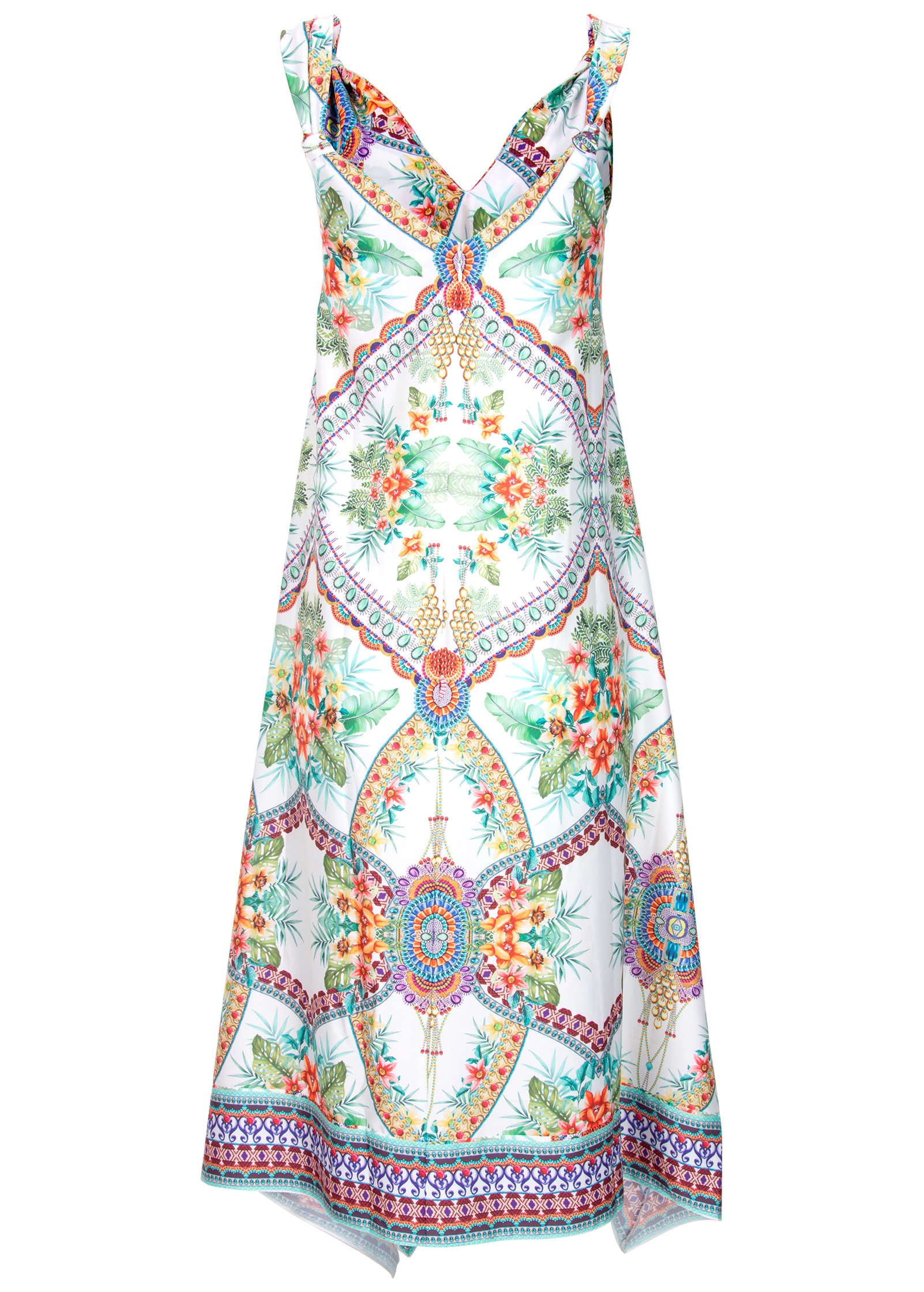 Everything about this dress is head turning. Most notably. the statement handkerchief hem. but also the easy. billowy shape. The curved neckline is also standout. more unique than a traditional V-neck. Crafted in our EffortLuxe fabric. this midi has a silky feel. subtle sheen and gorgeous drape. plus a hint of stretch so it doesn't wrinkle. * Sizes: XS (2). S (4-6). M (8-10). L (12-14). XL (16) * Sleeveless * V-neck and back * Handkerchief hem * Midi length approx. 34" * EffortLuxe (Poly/spandex. Imported)