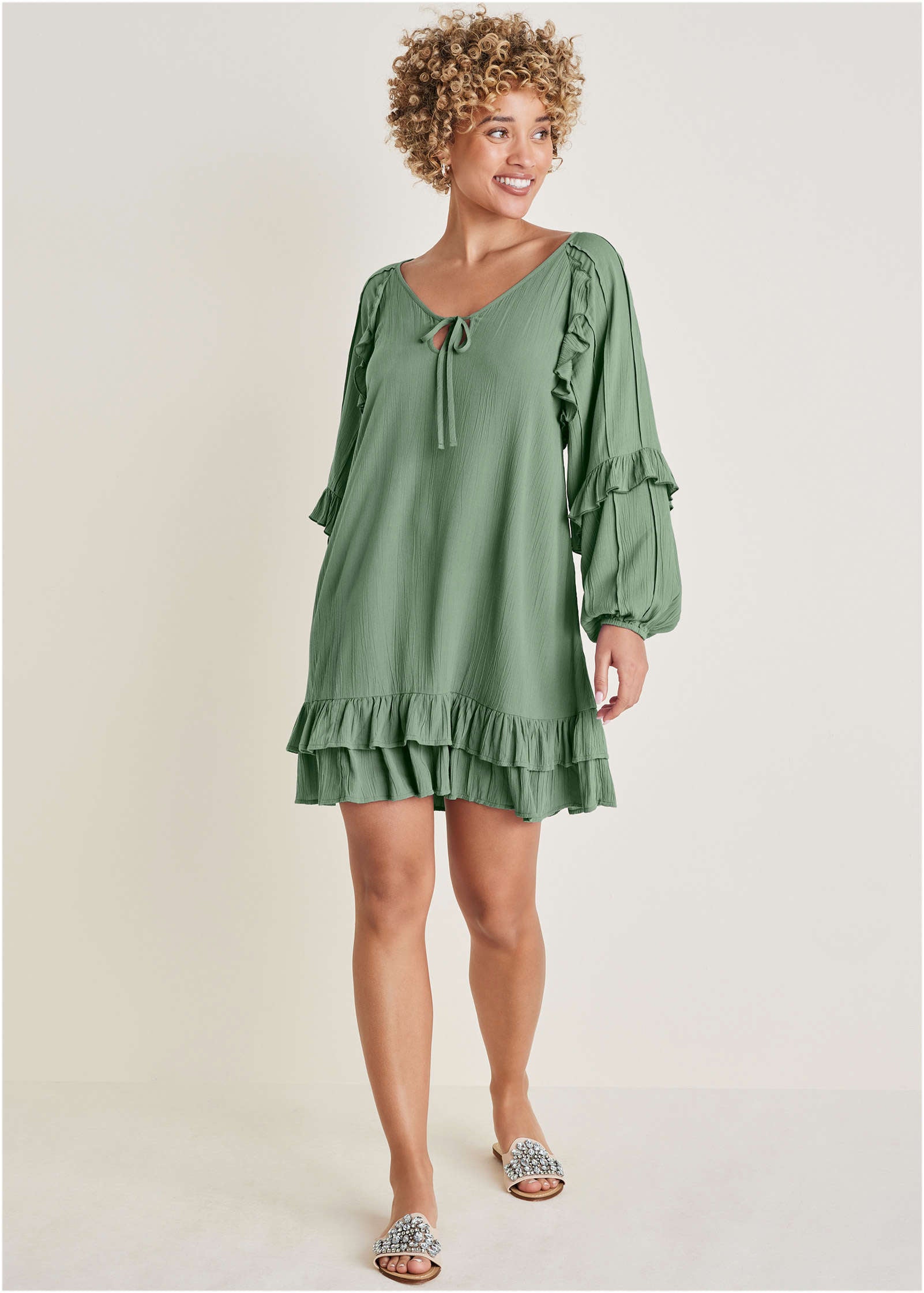 Ruffle Mini Dress - Basil