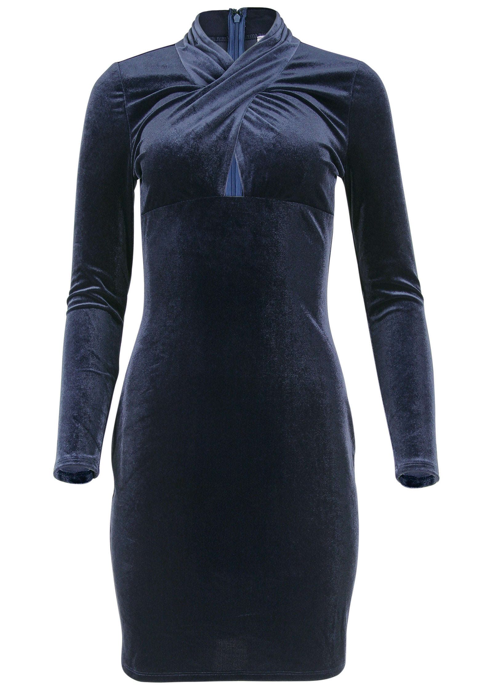 This plush velvet dress is so luxe. you'll totally have a crush. Designed with ultra-comfy stretch. the lavish fabric hugs your every curve for a figure-flattering fit. With a twisted neckline and flirty keyhole beneath the bust. this knee-length number is one sophisticated-yet-sultry piece.* Sizes: XS (2). S (4-6). M (8-10). L (12-14). XL (16)* Plus sizes: 1X (18-20). 2X (22-24). 3X (26-28)* Knee-length; from shoulder 37" missy; 40.5" plus* Long sleeves* Back zipper closure* Fabric has stretch* Polyester/elastane. Imported