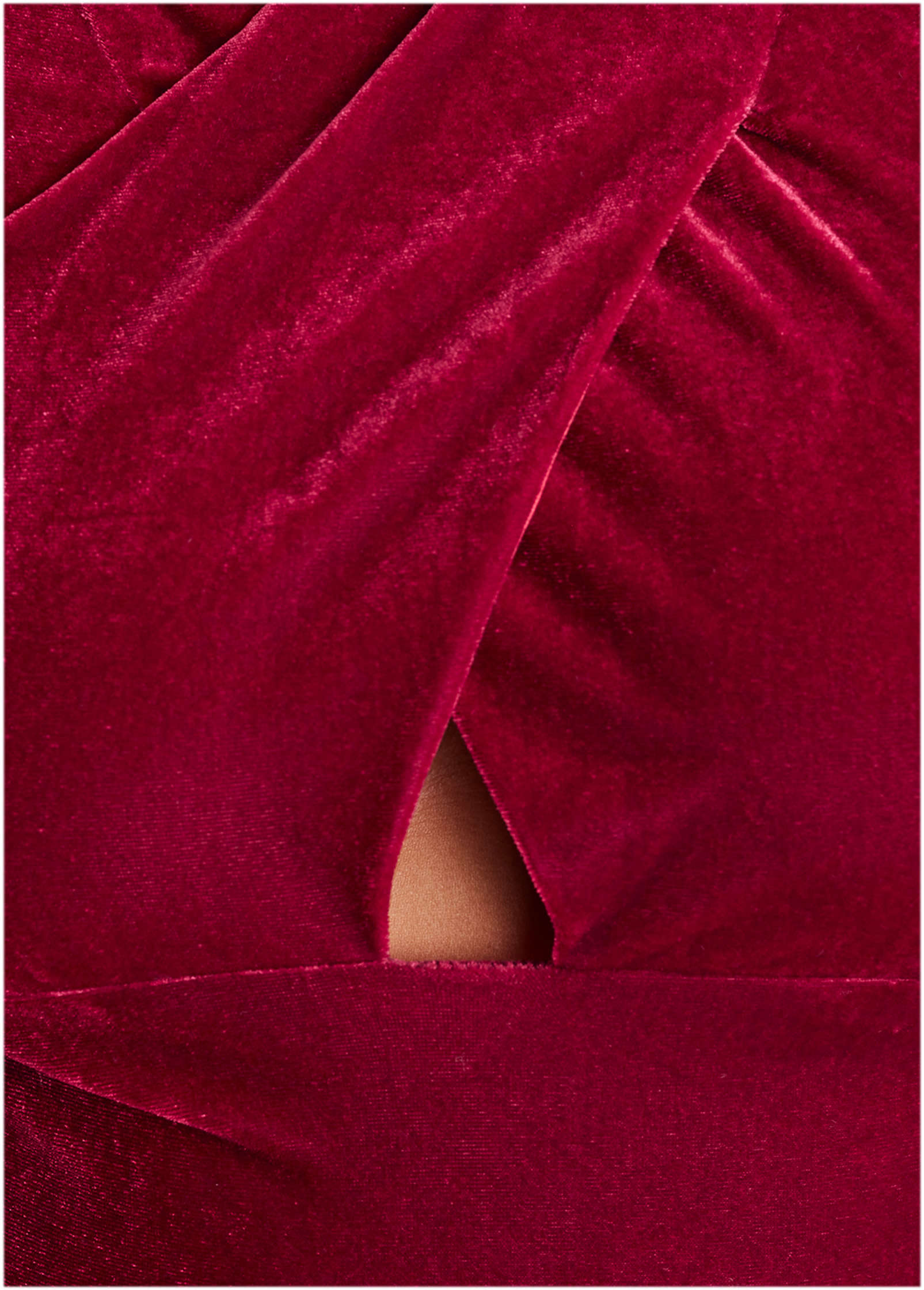 This plush velvet dress is so luxe. you'll totally have a crush. Designed with ultra-comfy stretch. the lavish fabric hugs your every curve for a figure-flattering fit. With a twisted neckline and flirty keyhole beneath the bust. this knee-length number is one sophisticated-yet-sultry piece.* Sizes: XS (2). S (4-6). M (8-10). L (12-14). XL (16)* Plus sizes: 1X (18-20). 2X (22-24). 3X (26-28)* Knee-length; from shoulder 37" missy; 40.5" plus* Long sleeves* Back zipper closure* Fabric has stretch* Polyester/elastane. Imported