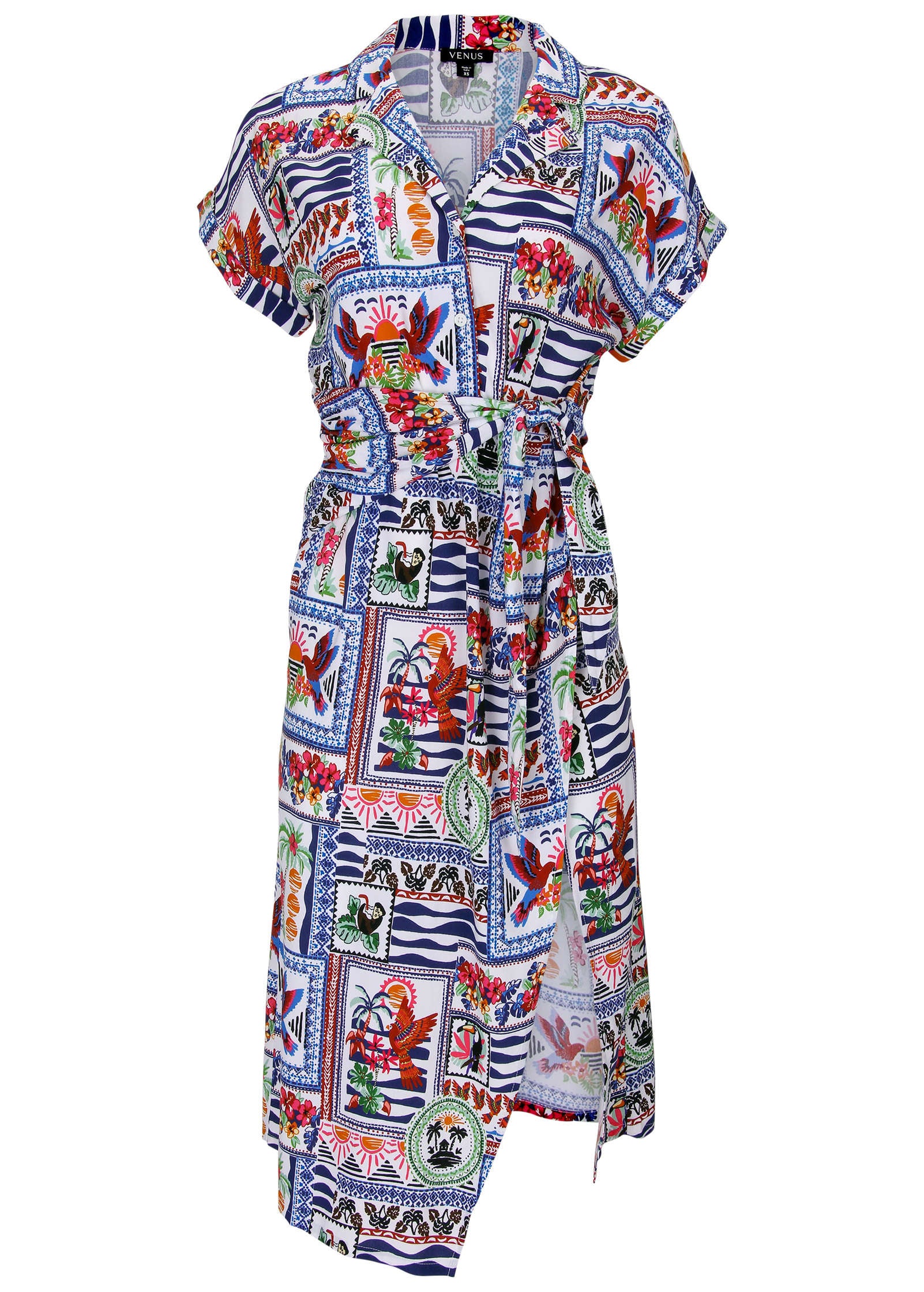Ciao bella. indeed. In this stunning dress. you'll always rival the scenery. This side tie midi dress is breezy enough for daytime and spicy enough for dinner with a view. The wrap style highlights your waist and the super-high side slit shows plenty of leg. With short sleeves that hit at the perfect spot on your arm. this one-and-done outfit is ready to accompany you on every single adventure.* Sizes: XS (2). S (4-6). M (8-10). L (12-14). XL (16)* Plus sizes: 1X (18-20). 2X (22-24). 3X (26-28)* Available in petite sizes* Available in plus sizes* Sleeveless* Tie front detail* Fabric has stretch* Viscose/nylon. Imported