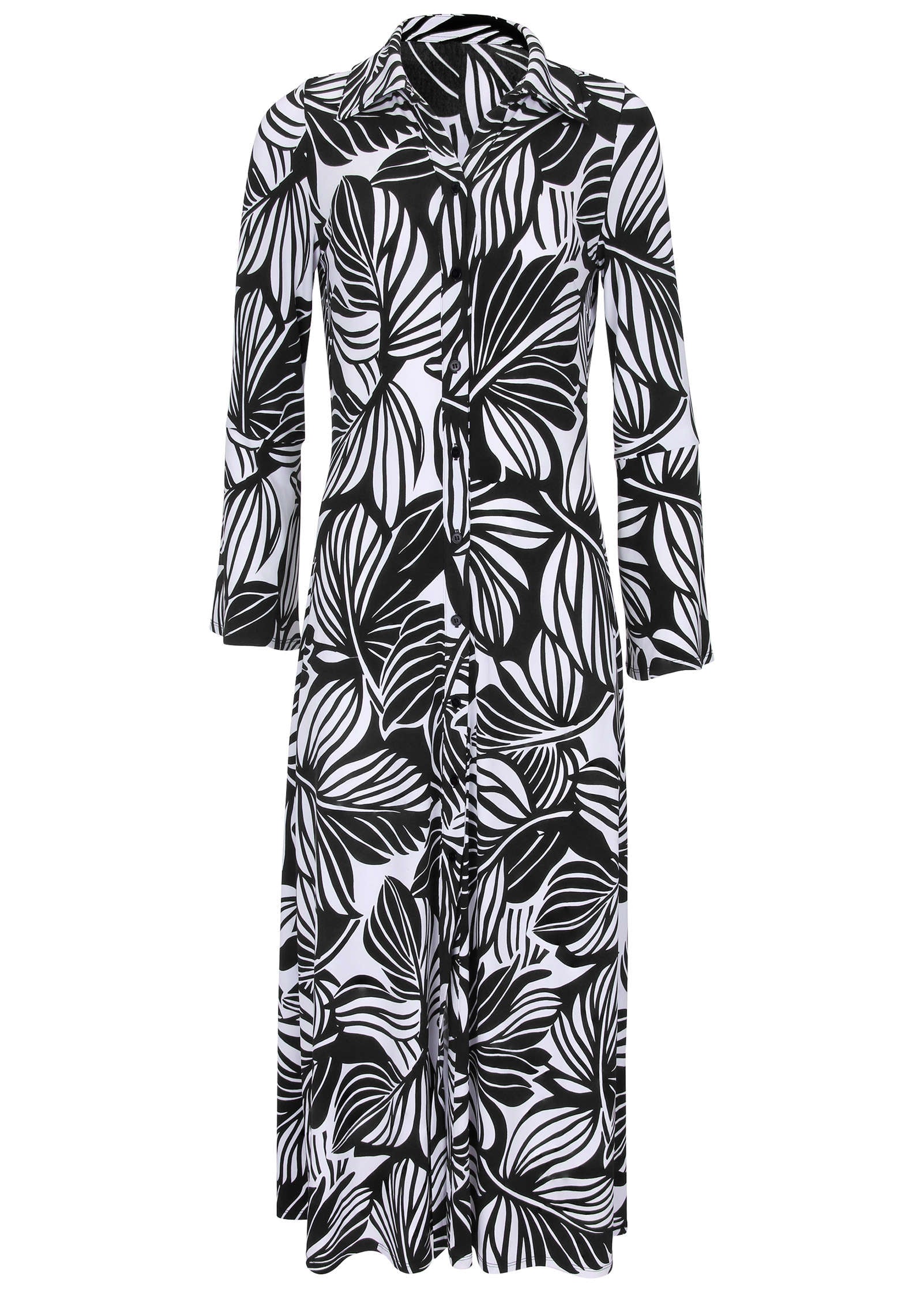 When you're packing your getaway bag. versatility is key -- and this dress has that in surplus! The fit and flare shape highlights your figure. while the bell sleeves add a dramatic touch. The working buttons down the front provide multiple styling options. Wear it with your favorite heels for a romantic dinner. then wear it open your Aljck bikini the next day to keep the vacation vibes going. * Sizes: XS (2). S (4-6). M (8-10). L (12-14). XL (16)* Plus sizes: 1X (18-20). 2X (22-24). 3X (26-28)* Available in petite sizes* Available in plus sizes* Collard neckline* Long sleeves* Bell sleeves* Button front* Fabric has stretch* Polyester/elastane. Imported