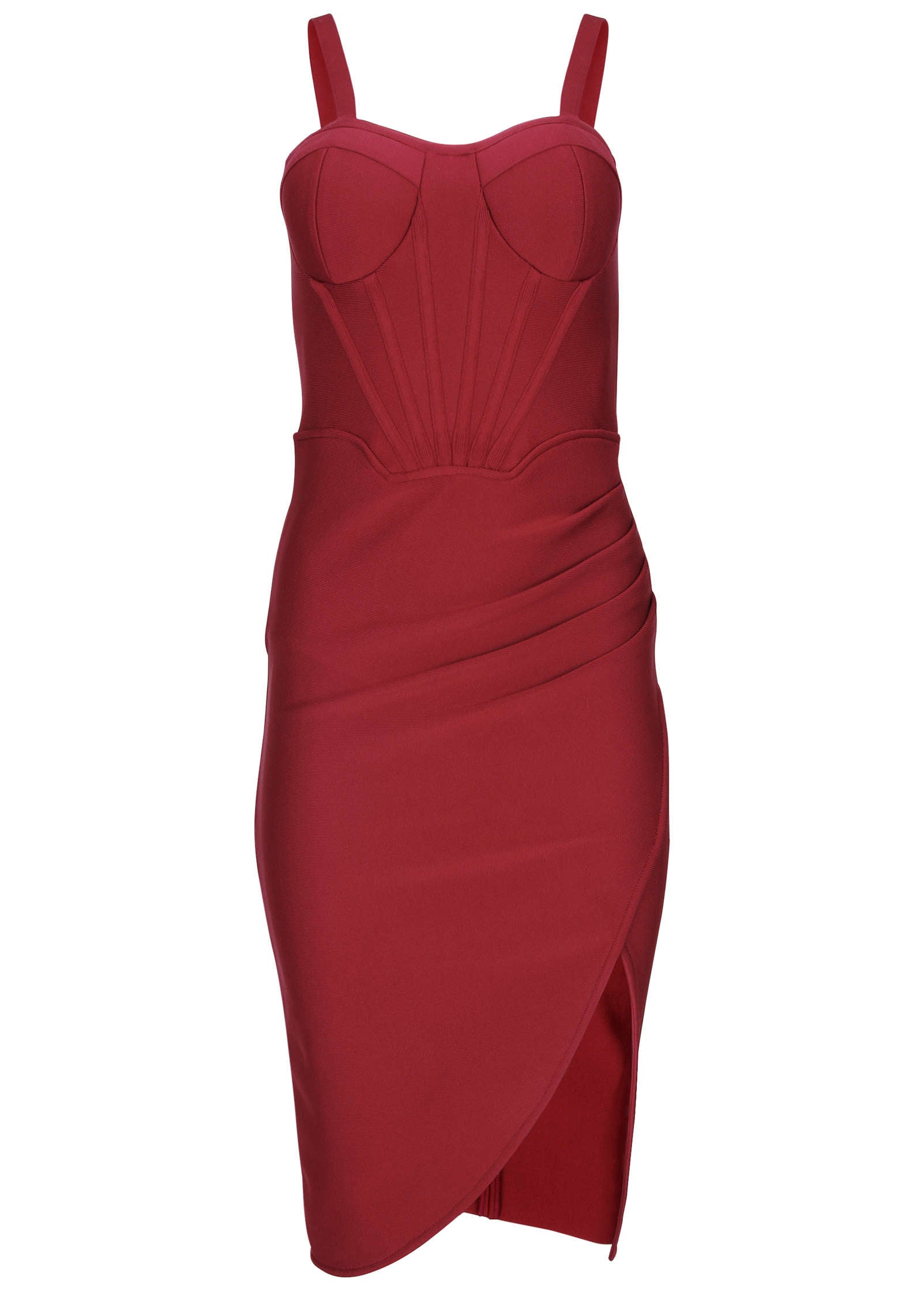 Sleek. sculpted. and designed to stun—this bandage dress hugs in all the right places and brings major main-character energy wherever you go. Add strappy heels and statement earrings for a head-turning look that works from cocktail hour to destination weddings.* Sizes: XS (2). S (4-6). M (8-10). L (12-14). XL (16)* Also comes in petites* Sleeveless: A minimalist cut that shows off your shoulders* Center back zipper closure: Easy on and off with a seamless finish* Side slit: Adds drama. movement. and just the right amount of leg* Stretch fabric: Contours and flatters your shape while keeping you comfy* Nylon/spandex. Imported