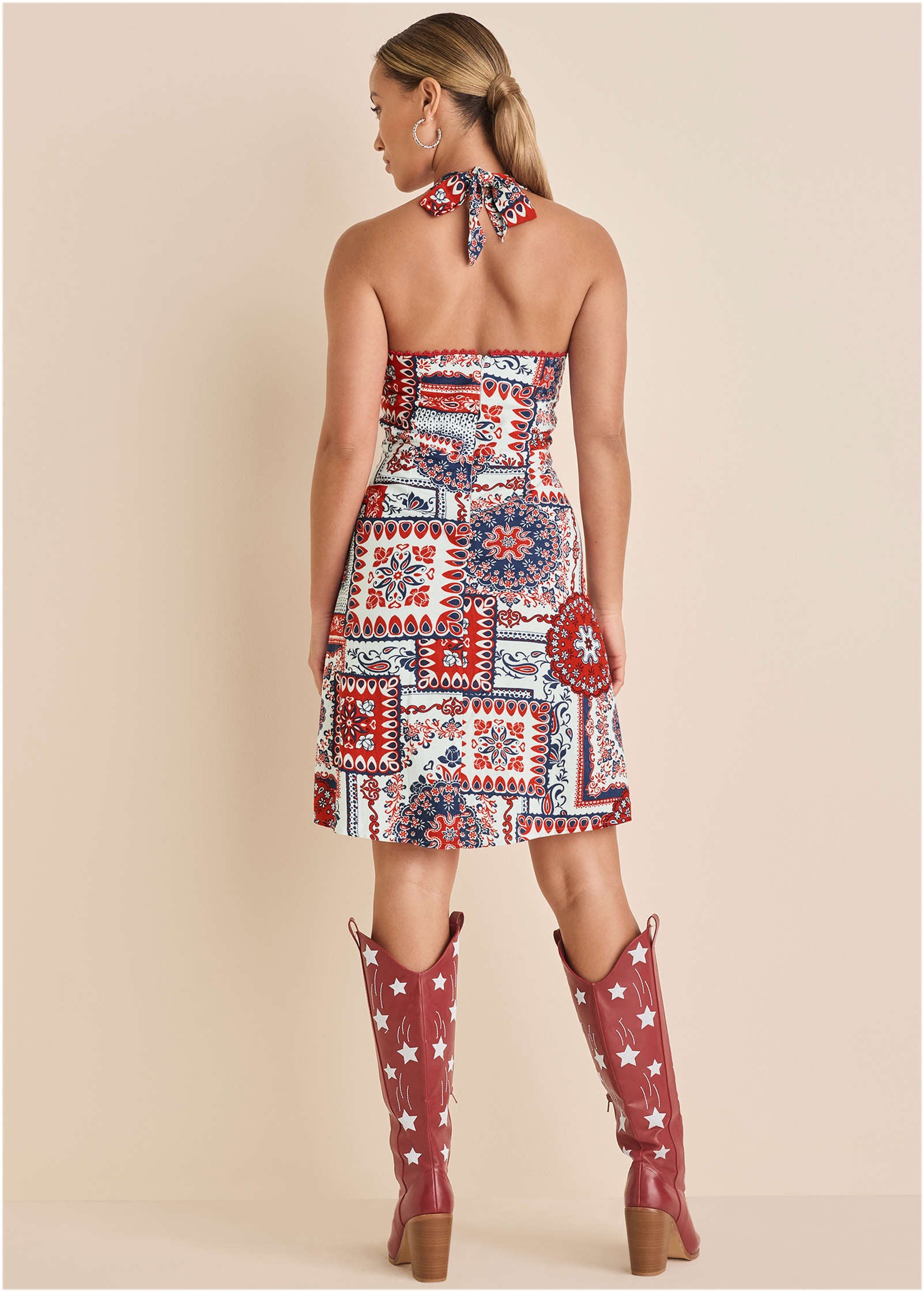 Easy-breezy meets effortlessly chic. The Sleeveless Linen Dress is your sunny-day hero. with a halter neckline and flattering A-line shape that screams vacation-ready. The subtle trim details at the neckline and hem add a crisp. polished touch. while the lightweight linen keeps you cool no matter where the day takes you.* Sizes: XS (2). S (4-6). M (8-10). L (12-14). XL (16)* Halter neckline: Sleek and flattering for a modern summer silhouette.* Trim along neckline and hem: A sweet touch that elevates the look.* Sleeveless: Made for warm-weather days.* Invisible back zipper closure: Clean finish with easy on-and-off.* A-line shape: Flowy. feminine. and universally flattering.* For printed items; placement may vary* Viscose/cotton/linen. Imported