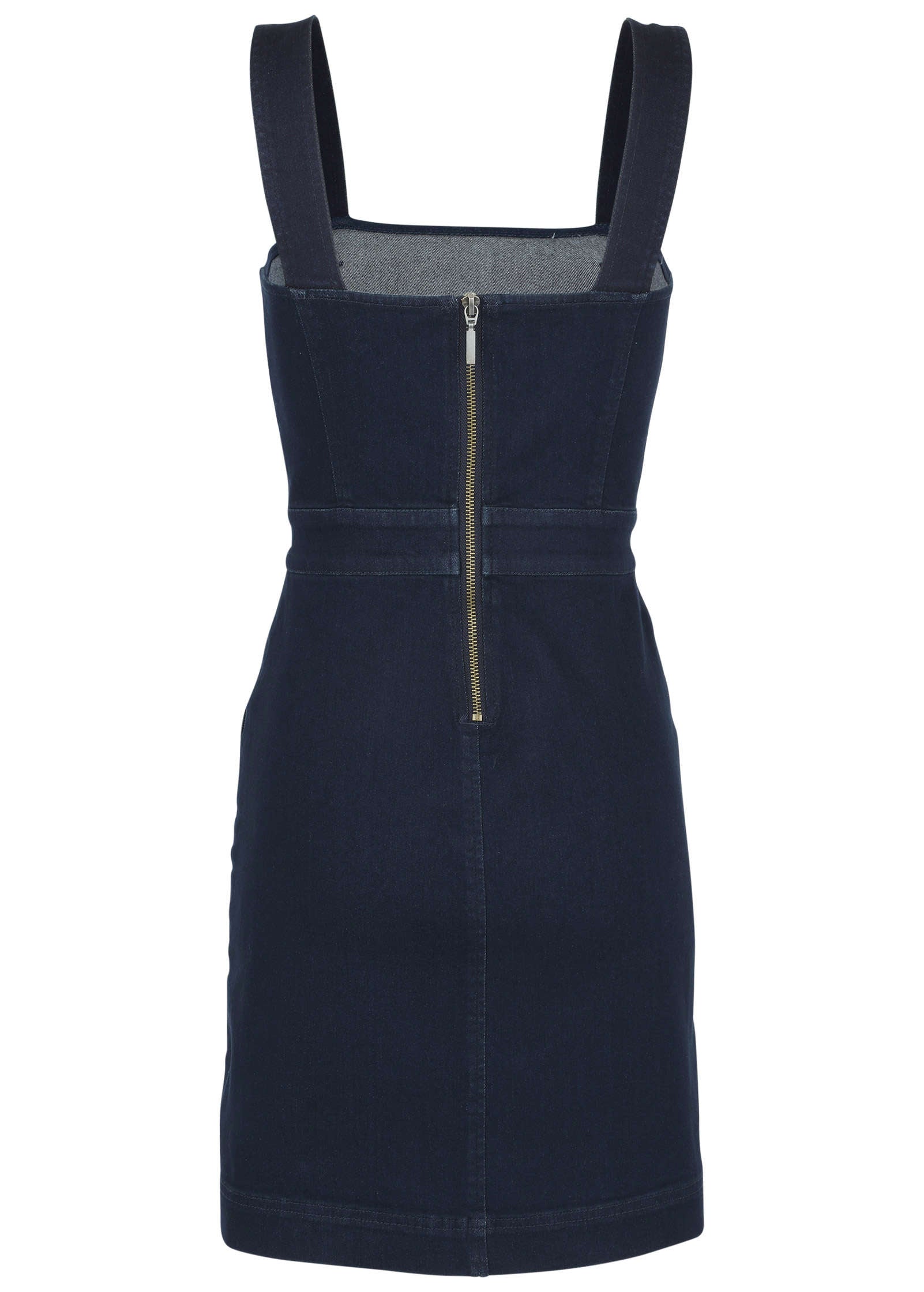 The Denim Button Mini Dress is a must-have for casual days that call for a little extra. With a chic square neckline. sleeveless cut. statement button detail. and an exposed back zipper. this mini shows off just the right amount. Pair it with boots or heels and you're good to go!* Sizes: XS (2). S (4-6). M (8-10). L (12-14). XL (16)* Square neckline: Modern and flattering* Sleeveless: Perfect for layering* Button detail: Adds extra charm* Exposed back zipper: Easy on and off* Cotton (CmiA)/poly/elastane. Imported.