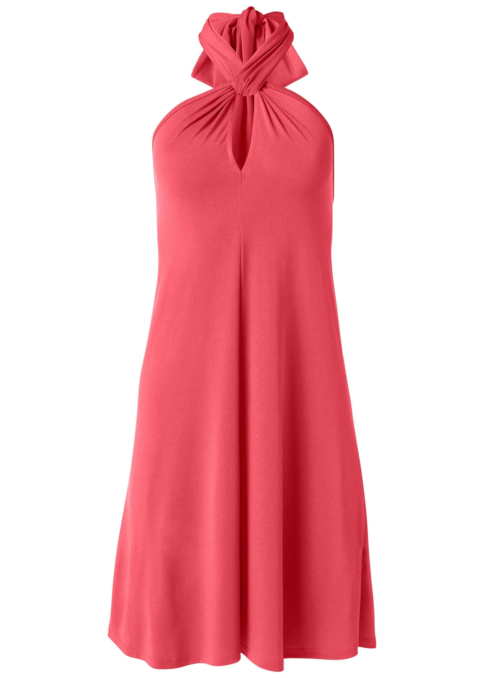 You're looking at the quintessential sunny-day dress. The twisted halter neckline is perfect for showing off sunkissed shoulders and also draws attention to the small keyhole detail underneath. This swingy mini dress has an effortless drape and easy. breezy silhouette that makes it a warm-weather must. * Sizes: XS (2). S (4-6). M (8-10). L (12-14). XL (16) * 31" approx. length; varies by size * Fabric has stretch * Unlined * Sleeveless * No closure * A-line * Recycled poly/elastane. Imported.