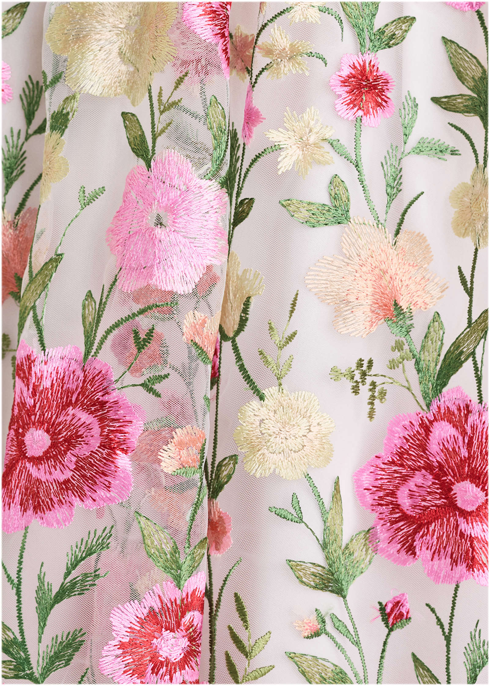 This embroirdered babydoll mini dress is so pretty. it'll make the entire garden jealous. The V-neckline and sleeveless design make it perfect for warm spring days. while the ruched front creates a flattering shape. The all-over embroidered flowers add a whimsical touch. and the lined design ensures comfort all day long. Whether you're attending a garden party or brunch with friends. this dress will have you feeling effortlessly chic.* Sizes: XS (2). S (4-6). M (8-10). L (12-14). XL (16)* V-neckline: Flattering and fresh for spring.* Sleeveless: Keeps you cool and breezy.* Ruched front: Adds texture and definition to your silhouette.* All-over embroidered flowers: A delicate. feminine touch for a charming look.* Lined: Comfortable for all-day wear.* Poly. Imported