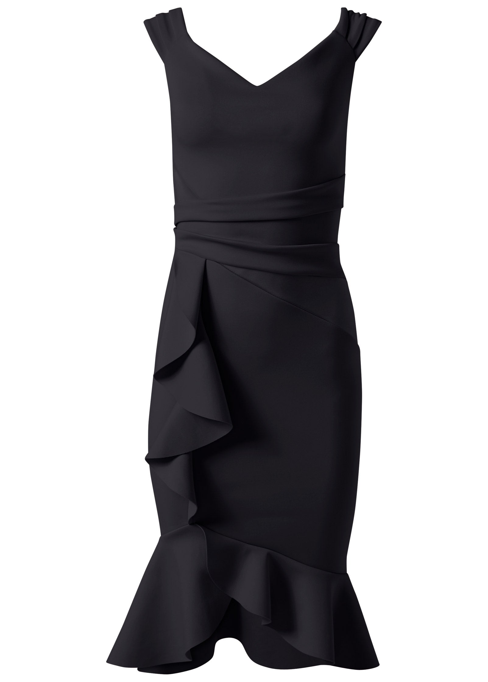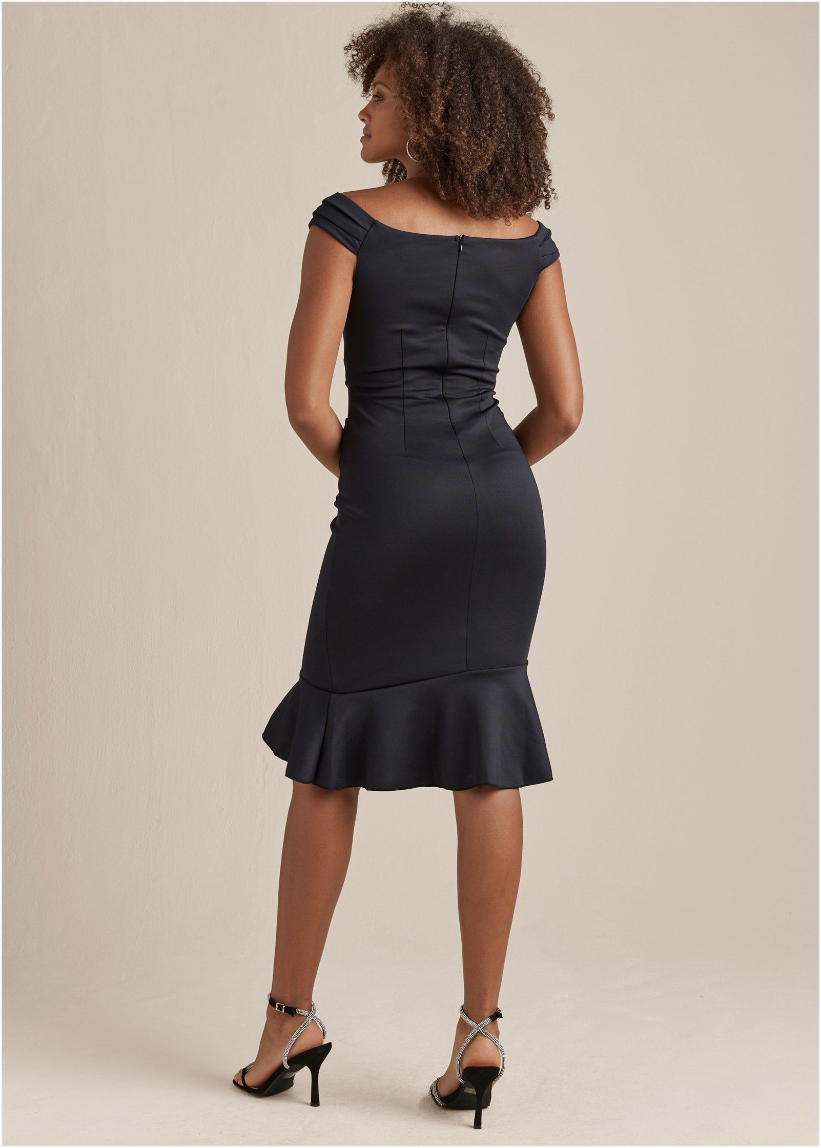 If you're looking for a dress that flatters (of course you are!) then stop the search. This knee-length number magically fits and flatters every size and shape. making it a best seller. The secret is in the silhouette that creates an hourglass shape. from the off-the-shoulder sleeves to the cinched waist to the ruffle hem that floats out at the knee. Moral of the story: add this to your closet ASAP!* Sizes: XS (2). S (4-6). M (8-10). L (12-14). XL (16)* Plus sizes: 1X (18-20). 2X (22-24). 3X (26-28)* Knee length. 38" from shoulder* Off-the-shoulder* Invisible back zipper closure* Ruffle details* Polyester/elastane. Imported