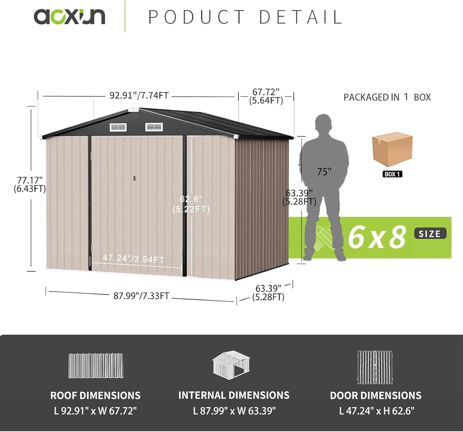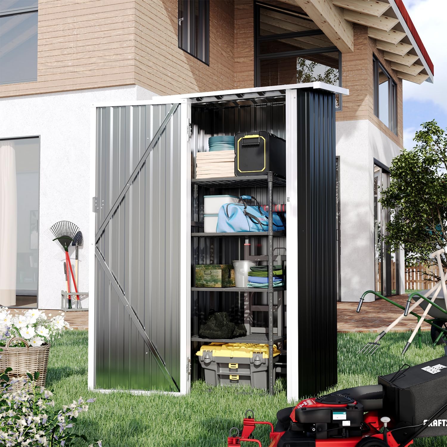 - Spacious Capacity for All Your Needs: With dimensions of 79"L x 50"W x 74"H. this 6x4FT shed provides ample space for storing snow blowers. shovels. outdoor furniture. bicycles. and toy cars. Optional storage racks (sold separately) can be installed to organize tools. umbrellas. antennas. and other items