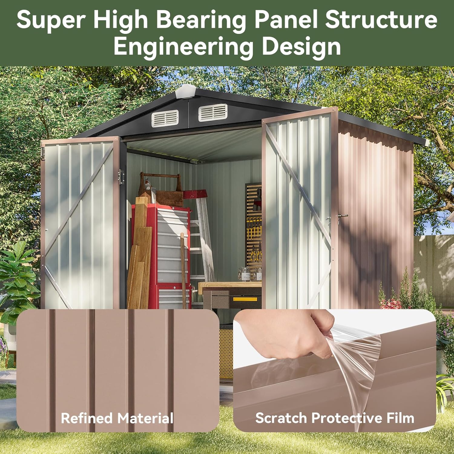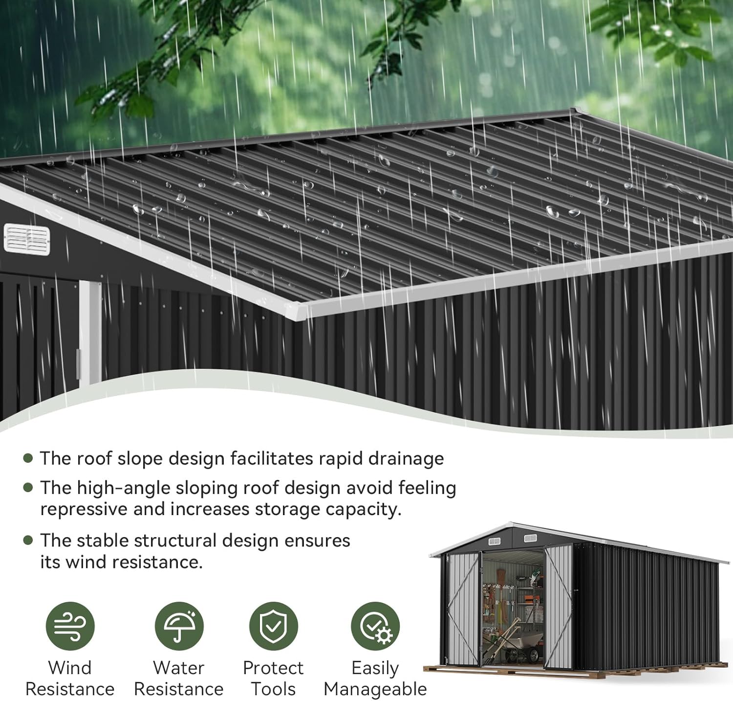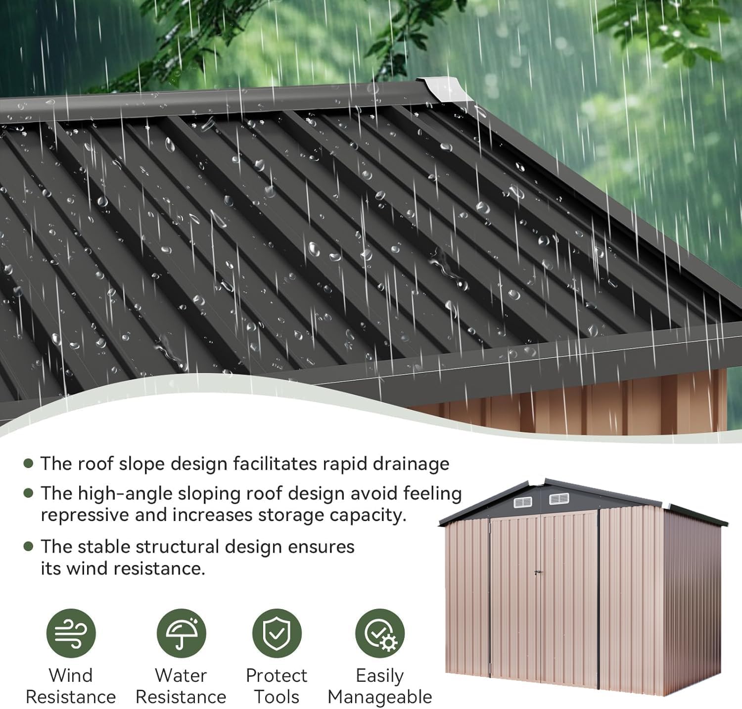 - Sturdy & Weather-Resistant Construction: Crafted with a robust frame and heavy-duty galvanized steel. this storage shed stands up to harsh weather conditions. ensuring a lengthy lifespan. Featuring a thick metal roof and reinforced wall panels. the shed offers exceptional stability. Wind Resistance: Up to Grade 6 (24-30 mph). Snow Load Capacity: Up to 6 inches