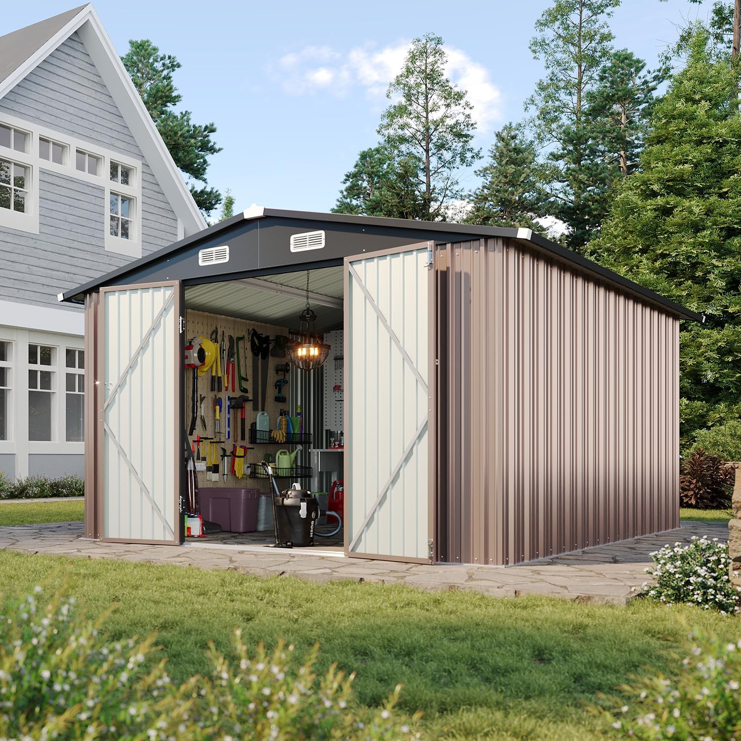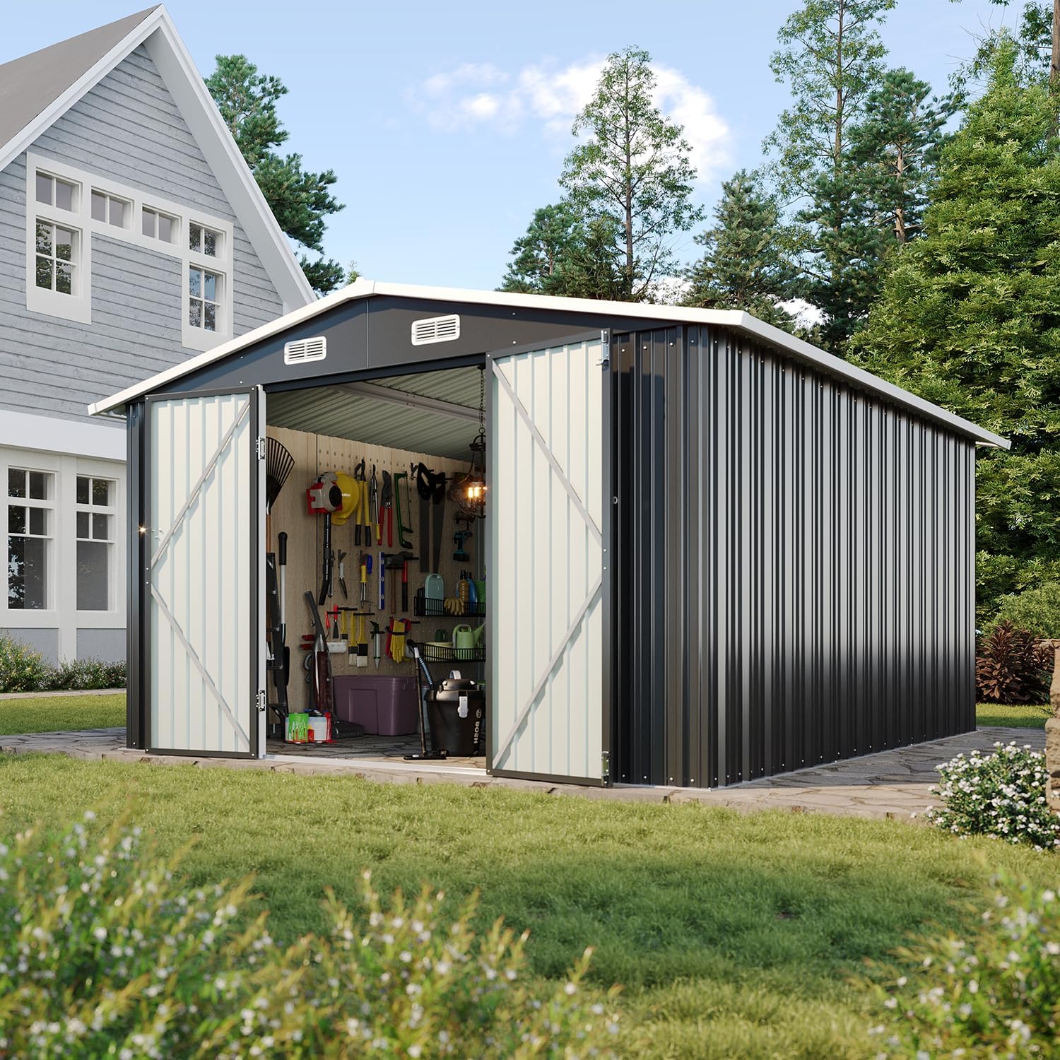 - Efficient Drainage & Ventilation: The shed's sloped roof maximizes interior space while preventing rainwater accumulation. Strategically placed vents enhance interior airflow. maintaining a breathable environment. Secure. padlock-ready doors (padlock not included) offer easy access and heightened security for your stored items
