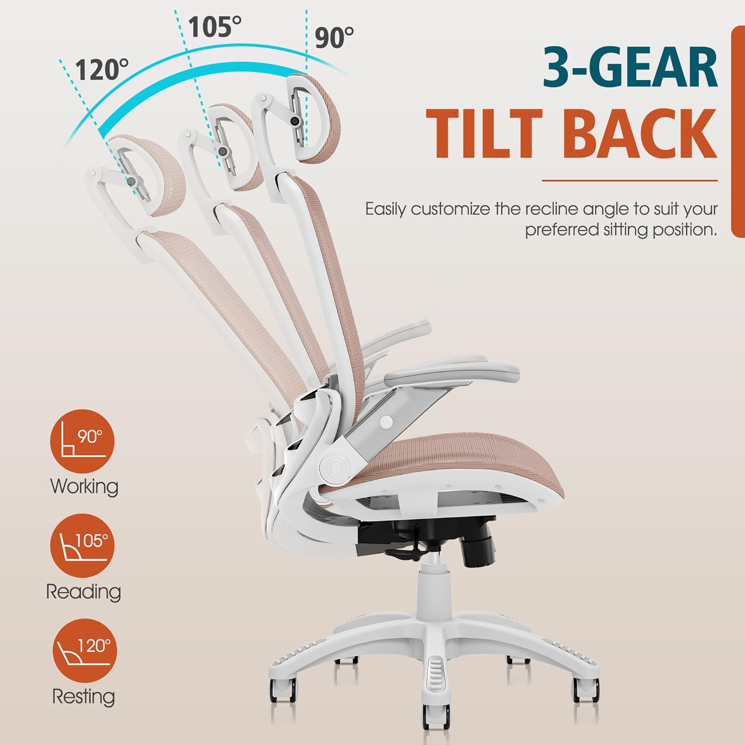 - 【ERGONOMIC OFFICE CHAIR】- The ergonomic chair provides 4 supporting points(head/ back/ hips/ hands) and a proper lumbar support. Suitable for people of about 5'5" to 6'2"(Please refer to the height of the user). It's easy to adjust seat height. headrest. backrest and flip-up arms to meet different needs. good for sitting long hours.