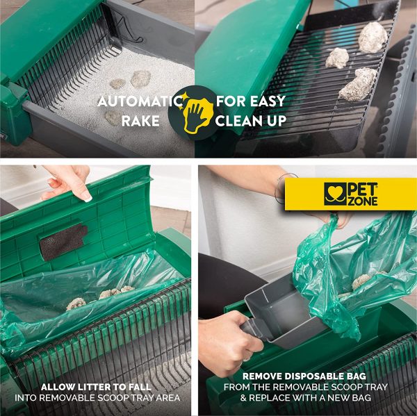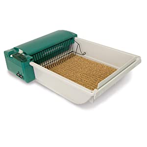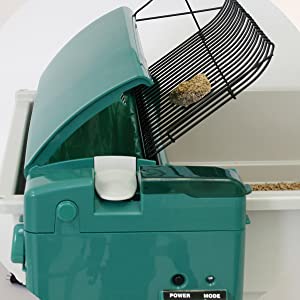Self-cleaning automatic litter box with smart sensor for triggered activation of cleaning cycle. Motor and scooping rake automatically runs 15 minutes after cat leaves the box with a powerful, yet quiet motor unit. Works with your favorite clumping litter; no need to buy special or costly crystal litter cartridge replacements.