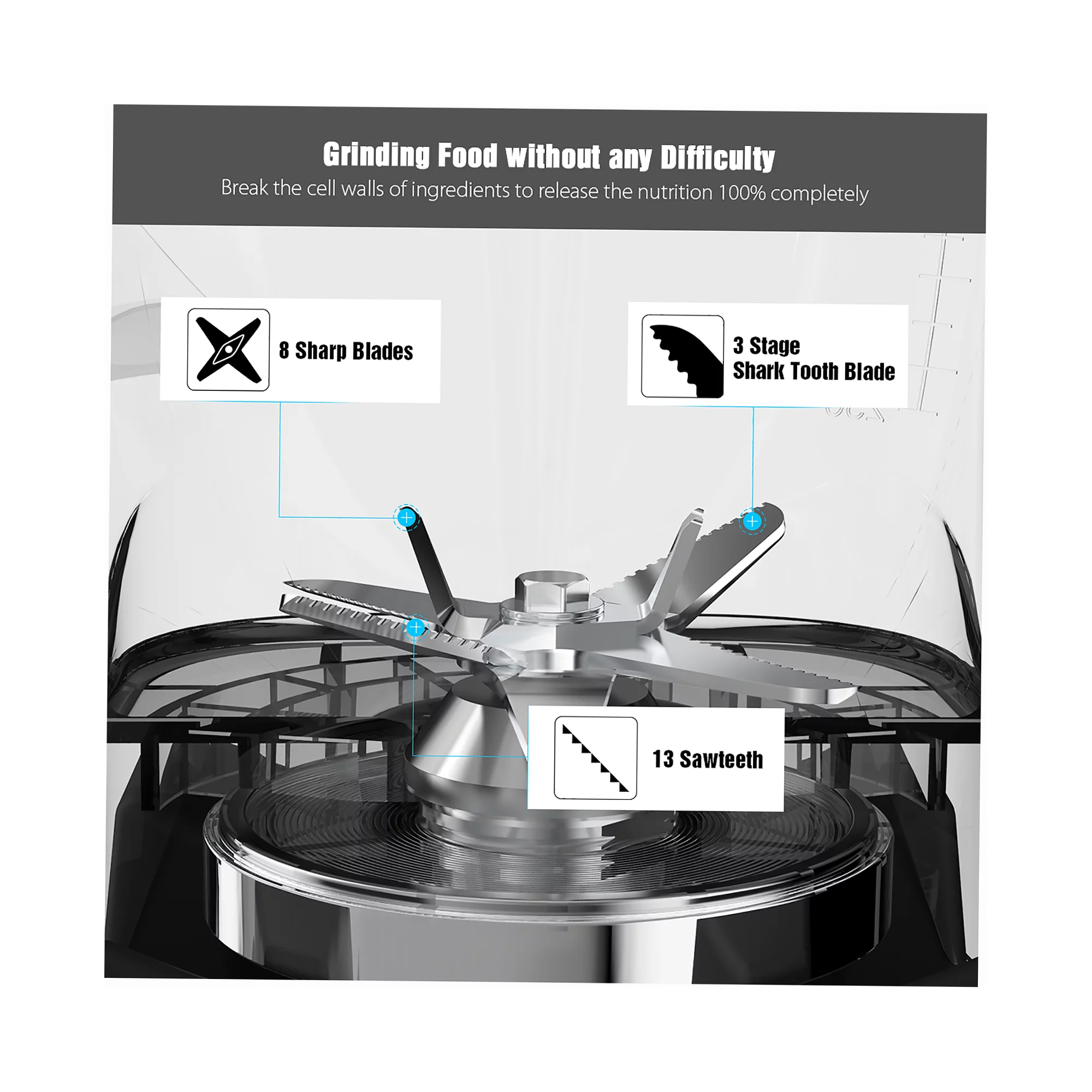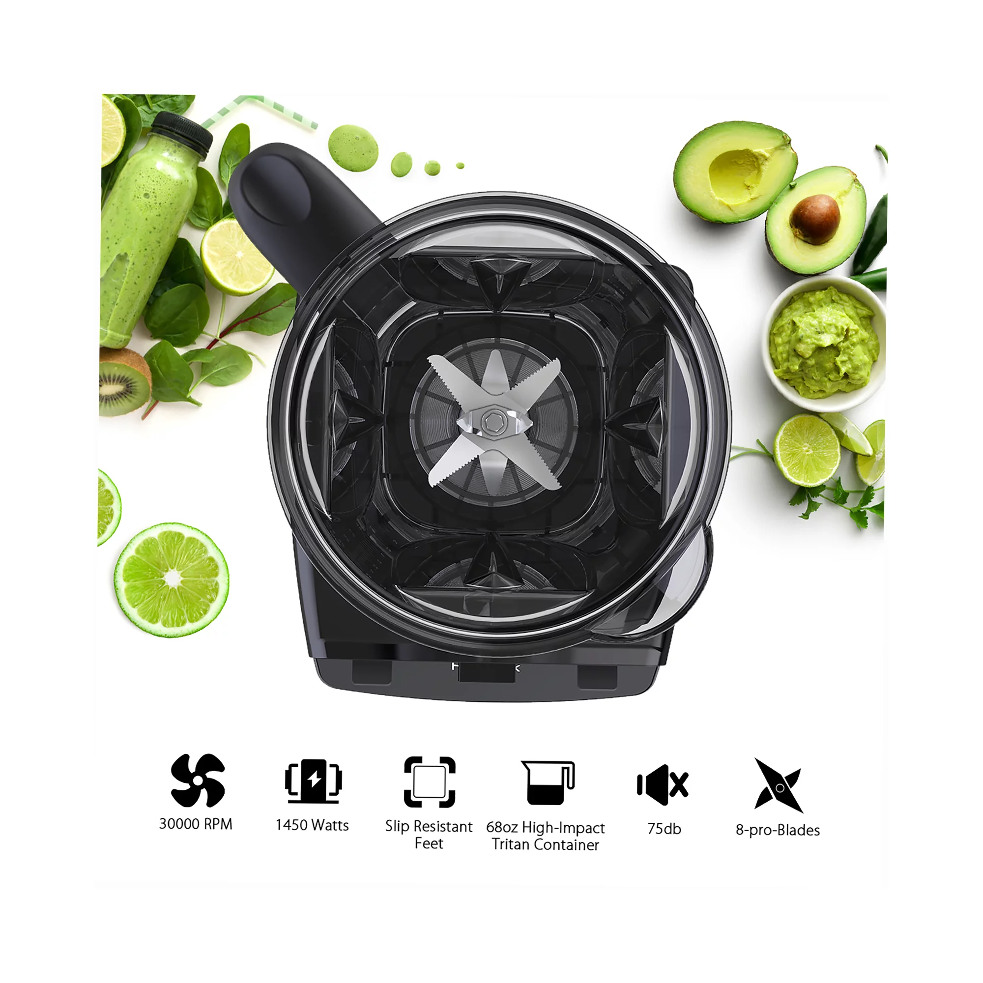 - Easy to Get Smoothies with Great Texture: Equips with a 1450W pure copper motor and 8 sharp blades, during the blending process, it can achieve a high-speed rotation of 30,000 RPM, perfect for fruit and vegetable juices, handmade nut butter, frozen dessert, baby food and more.