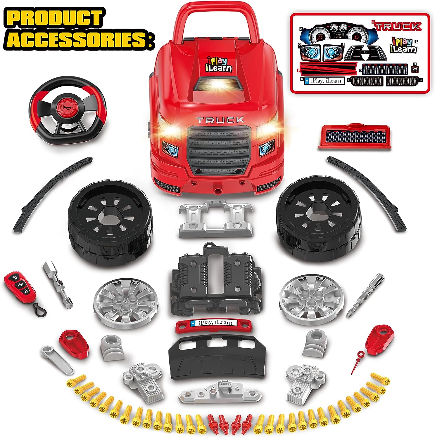 - Repair Engine Toy-Jumbo Size BIG Truck Engine that can be assembled and disassembled. two repairing tools. a RC car key with simulated lock. unlock/alarm and engine sound effects. and DIY sticker set! 58 parts and tools. each engine part can be removed for "repair". Batteries not included.